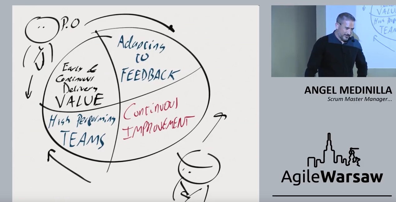 We human beings are very bad at projecting to the future and being sensible to long-term decisions so in companies we tend to favor very short-term decisions. That’s why you need a scrum master manager. Scrum master is responsible for creating high-performing teams and continuous improvement. Product owner is responsible for continuous delivery of value and adapting to feedback constantly. Product owner will try to figure out what’s the most important valuable thing that we can do in the next iteration. This is the core of agility, Angel’s simple but powerful model describing yin and yang in agile development. In his talk Angel describes changes in the corporate agile world with an emphasis on agile teams. Teams are great when they have good communication, care about each other, help themselves, learn from each other and when they are good at solving conflicts. Listen to the presentation and find out how to achieve that.